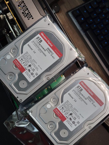 - Drives: 2x 8 TB WD Red Plus, 2x 1TB Samsung 980 NVMe, 1x 500GB Samsung 860 EVO