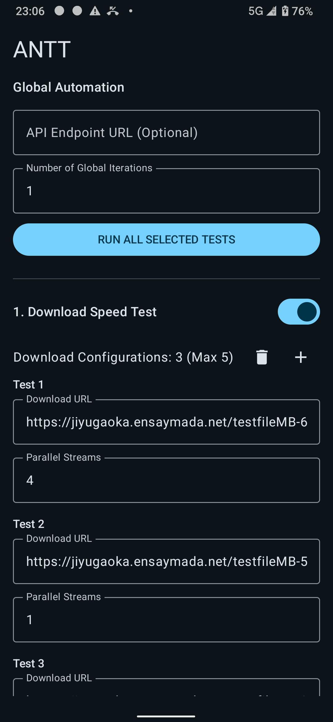 - User should also be able to specify how many URLs it wants to be part of the download test.