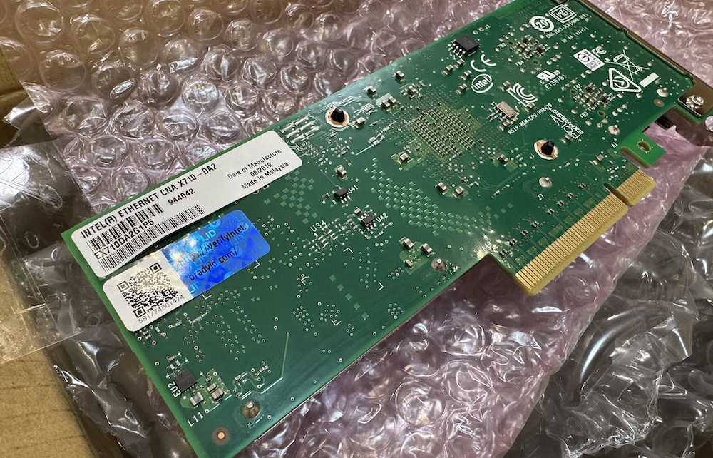 Certain Lenovo Tiny PCs are popular machines for having a PCIe slot that can be fitted with 10G NICs, so that’s what I went with. I was able to get a secondhand one with an Intel i5-8500T 6C CPU. This should be more than enough for my needs, even if I wanted to host other services on this machine. As for the NIC, I had the option of going with Mellanox or Intel ones. To be more specific, I was choosing between a Mellanox ConnectX-4 and an Intel X710-DA2. Mellanox seems to be more popular in terms of compatibility and stability, but it’s also known to have elevated power consumption since it’s not able to achieve higher C-states even when idle. The X710-DA2, on the other hand, was known to have compatibility issues, especially when using the OEM-branded ones. I went with Intel to have peace of mind knowing that I tried my best to save electricity costs (as if all the other machines in the homelab justify all the power they require!).