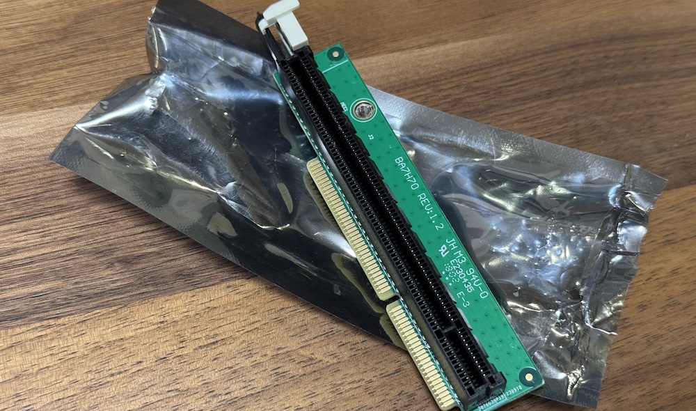 Lenovo M920q Tiny PCs require a PCIe riser for plugging in your cards. This can easily be bought for about ¥2000~3000 online. There are different part numbers in terms of the supported bus speed, so I had to ensure I got the one with P/N: 01AJ940, which supports x8.