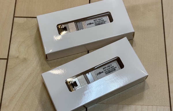 10G SFP+ to copper transceivers are known to run hot. And because I keep my networking equipment in an unventilated closet, I had to shed an extra couple of bucks for the premium ones—the version that supports up to 80m of copper. For the transceivers, I got them from a brand called ZYOPM.
